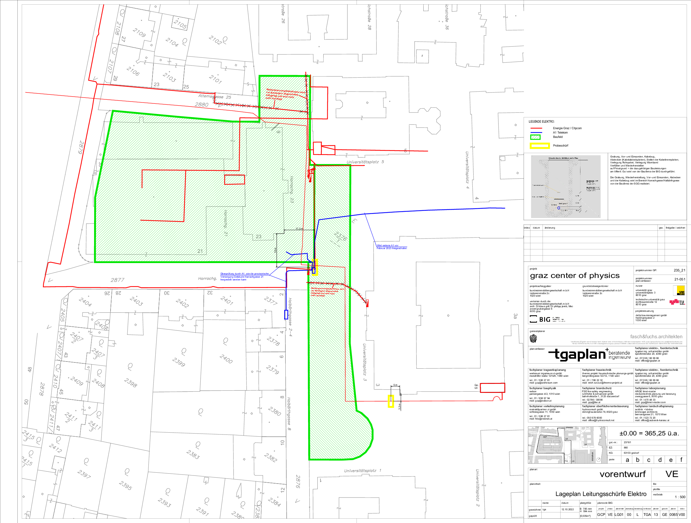 Im Namen der Direktion für Ressourcen und Planung, möchten wir Sie informieren, dass ab 03.11.2022 mit diversen Schürfungen und Grabarbeiten am Campus, für das neu geplante „Grazer Center of Physics“, begonnen wird (Harrachgasse 21, Vorklinik).
